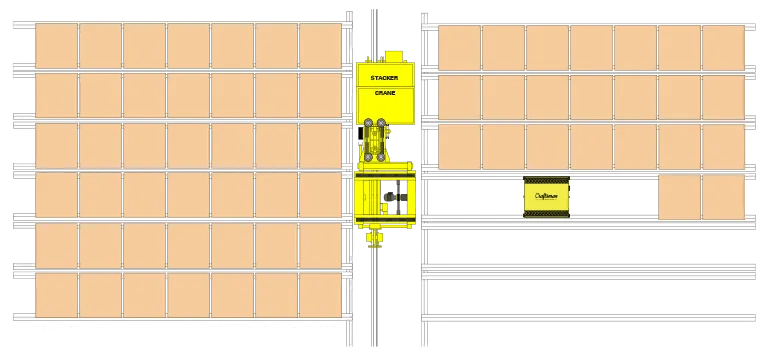 Crane Shuttle ASRS Features The pallet shuttle then moves with the pallet load, from the crane to the innermost free storage location. High-density storage racks are installed on either side of the working aisle hence only one aisle space is required. The shuttle and the stacker crane are managed by our WMS software, which administers warehouse operations.