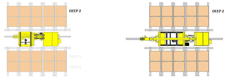 Automated storage and retrieval machines that run on rails, with a single or double mast frame depending on the requirements of the system. Equipped with telescopic forks, for the storage and retrieval of pallets from single or double-deep racks, making this solution is highly adaptable to a wide range of materials and handling needs.
